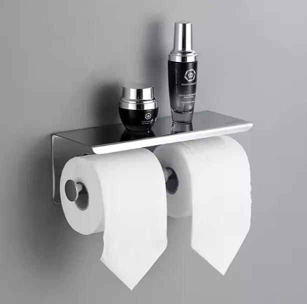 حامل وراقة مناديل كروم أنيق وعصري، مصنوع من الستانلس ستيل المقاوم للصدأ، مثالي للحمام ومرافق المنزل. يتميز بسهولة التركيب والتوافق مع مختلف أحجام المناديل الورقية، مع قاعدة علوية واسعة لوضع احتياجاتك الشخصية مثل الهاتف، المفاتيح أو المحفظة. تصميم عملي يجمع بين الجمال والمتانة.